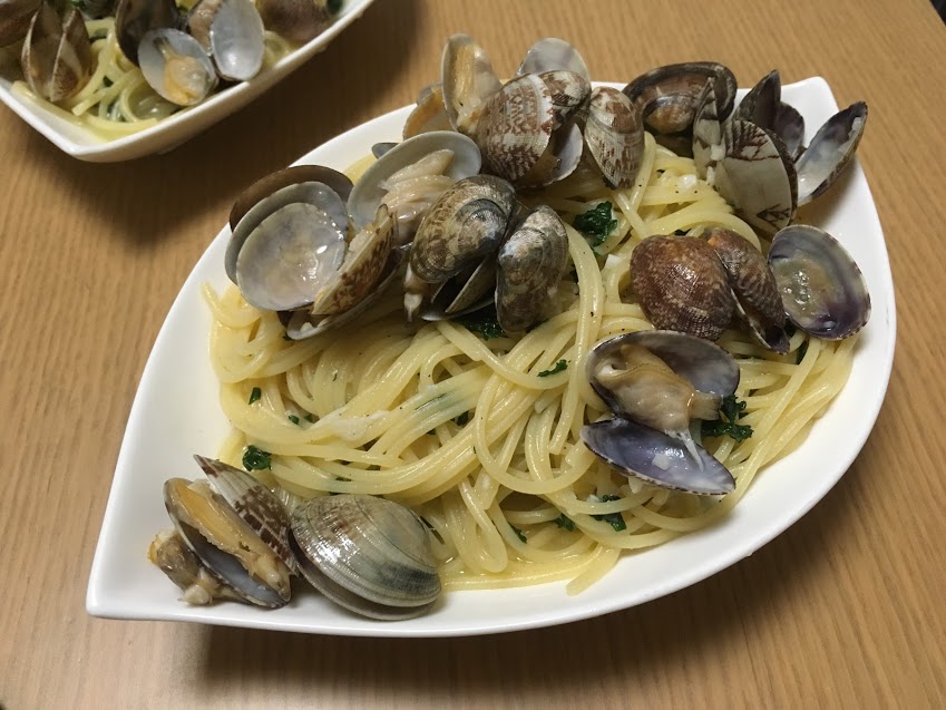 幾多の苦難を乗り越えて作られたボンゴレビアンコ。味も適当に作った割には上出来。