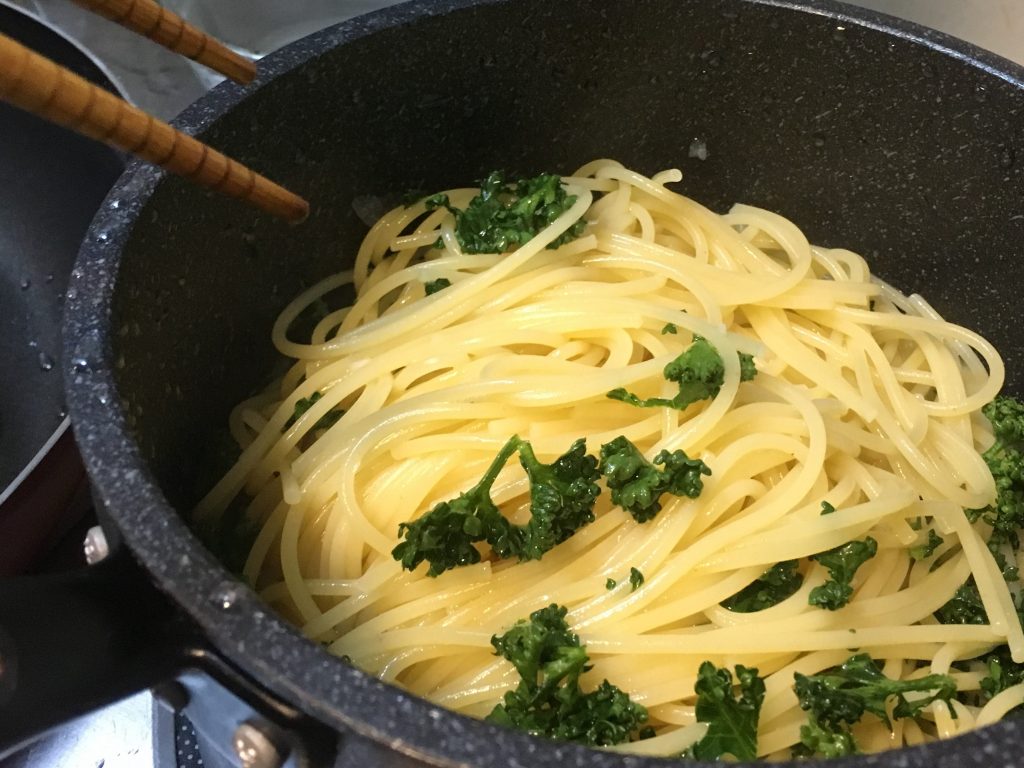 5.オリーブオイルとニンニクを小火で香りが出てくるまで炒める
